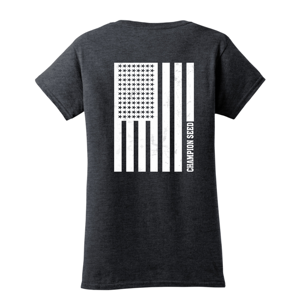 Decoration: Screen printed Champion Seed logo and US Flag in white.